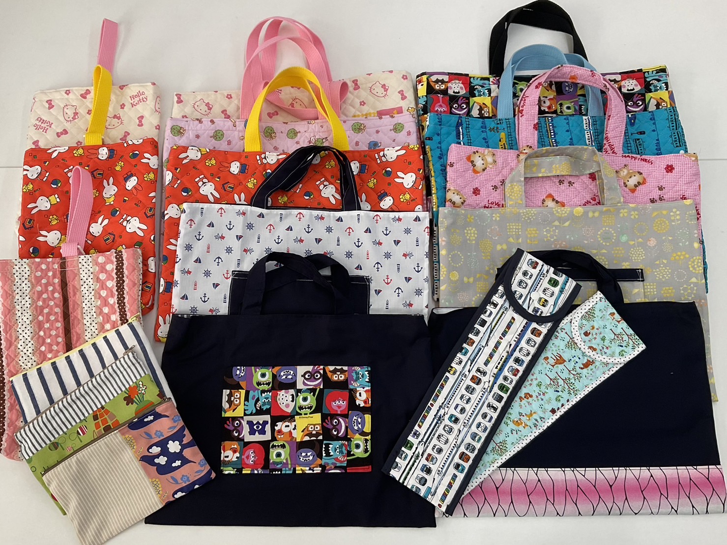夏休み前に、皆さまからご寄付いただきました布地にて、手づくり品がたくさん出来上がってきています。小学校生活で使用するランチョンマットや巾着、そしてレッスンバック、体操着袋、リコーダー袋、上履き袋…etc。可愛いもの、かっこいいもの、あれこれいっぱい集まっていますよ。お楽しみに♪